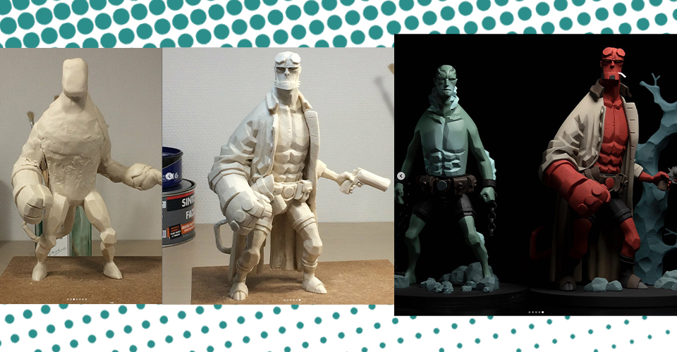 I came across these Hellboy statues and absolutely love them. They were made for some special limited release 8 years ago. It was sculpted by Alban Ficat who does also sorts of amazing character sculptures. If you scroll through his Instagram, you’ll find a ton of behind the scenes making of photos of Hellboy and Abe Sapien.